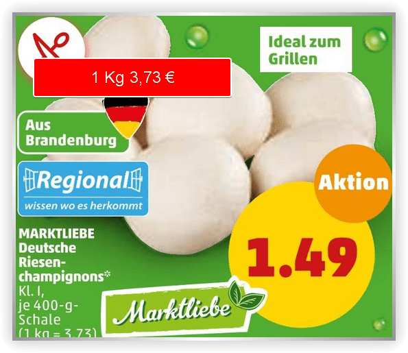 Ausgehend von den Angebotspreisen der deutschen und polnischen Discounter, zahlt der polnische Kunde nur etwa 65 Prozent von dem, was ein Kunde in Deutschland für 1 Kg. Champignon bezahlen muss. Auf Märkten. Bauernmärkten oder den sog. „Polenmärkten“ beträgt die Ersparnis oft ein Mehrfaches, weil die Waren direkt von den Erzeugern – ohne Zwischenhändler – stammt.