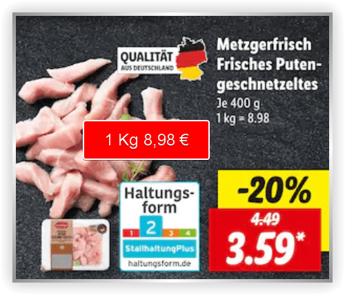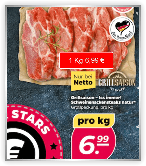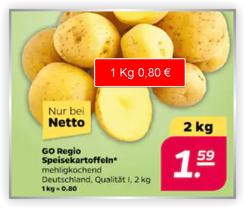 - Deutschland (Netto): 1 Kg 6,99 Euro
